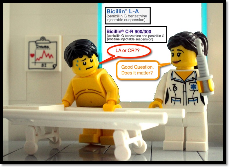 Last week we discussed the value of the tried and trusted antibiotic, Penicillin, for pneumonia. In the past we have also mentioned Acute Rheumatic Fever and the management of Strep Pharyngitis. We know that the therapy of choice for Strep Pharyngitis is Penicillin, and many of us prefer to use intramuscular injection.  Often, though, the question comes up as to which form of the IM Penicillin is appropriate: Bicillin® CR or Bicillin® LA?