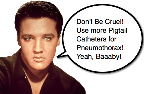 Pigtails This week I had the pleasure of working with my dear colleagues during the Pediatric Procedure Course at ACEP/AAP Advanced Pediatric Assembly.  We covered numerous important procedures, but one that deserves mentioning here is the use of Pigtail Catheters for pneumothorax and pleural fluid drainage. We have previous discussed the value of Pigtail Catheters for the treatment of Spontaneous Pneumothorax and Traumatic Pneumothorax.  Obviously, every decision we make comes with risks and benefits as well as pros and cons.  The choice of a device to drain air or fluid from the pleural cavity certainly shouldn’t be a snap decision.